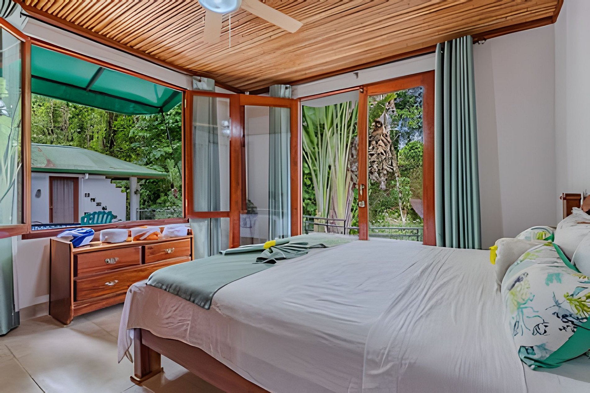 Disfruta de una estancia única en nuestro bed and breakfast, rodeado por la exuberante naturaleza de la selva y con la cercanía a la playa y una majestuosa catarata. Contamos con cinco habitaciones completamente privadas, cada una equipada con baño propio, aire acondicionado y desayuno incluido. Algunas habitaciones ofrecen vistas espectaculares al mar, al río, al jardín o a las montañas, además de balcón o terraza para disfrutar del entorno natural. Nuestros huéspedes pueden acceder a una amplia variedad de áreas comunes, diseñadas para su confort y disfrute. Relájate en la piscina, comparte momentos en nuestras salas de estar con TV o prepara tus comidas en la cocina completamente equipada. También puedes disfrutar de una terraza frente al río, con vistas al mar, donde la tranquilidad de la selva se mezcla con el sonido del agua. Este rincón privado en el corazón de la naturaleza ofrece el refugio perfecto para una experiencia de descanso y aventura, en un ambiente íntimo y exclusivo.