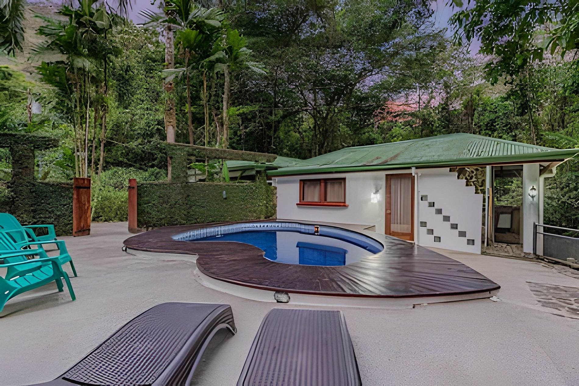 Disfruta de una estancia única en nuestro bed and breakfast, rodeado por la exuberante naturaleza de la selva y con la cercanía a la playa y una majestuosa catarata. Contamos con cinco habitaciones completamente privadas, cada una equipada con baño propio, aire acondicionado y desayuno incluido. Algunas habitaciones ofrecen vistas espectaculares al mar, al río, al jardín o a las montañas, además de balcón o terraza para disfrutar del entorno natural. Nuestros huéspedes pueden acceder a una amplia variedad de áreas comunes, diseñadas para su confort y disfrute. Relájate en la piscina, comparte momentos en nuestras salas de estar con TV o prepara tus comidas en la cocina completamente equipada. También puedes disfrutar de una terraza frente al río, con vistas al mar, donde la tranquilidad de la selva se mezcla con el sonido del agua. Este rincón privado en el corazón de la naturaleza ofrece el refugio perfecto para una experiencia de descanso y aventura, en un ambiente íntimo y exclusivo.