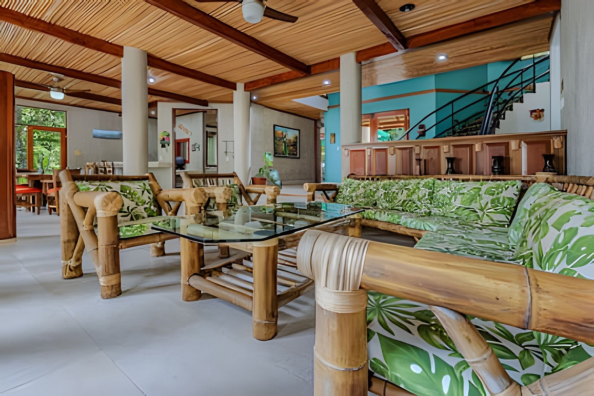 Nuestros huéspedes pueden acceder a una amplia variedad de áreas comunes, diseñadas para su confort y disfrute. Relájate en la piscina, comparte momentos en nuestras salas de estar con TV o prepara tus comidas en la cocina completamente equipada. También puedes disfrutar de una terraza frente al río, con vistas al mar, donde la tranquilidad de la selva se mezcla con el sonido del agua. Este rincón privado en el corazón de la naturaleza ofrece el refugio perfecto para una experiencia de descanso y aventura, en un ambiente íntimo y exclusivo.