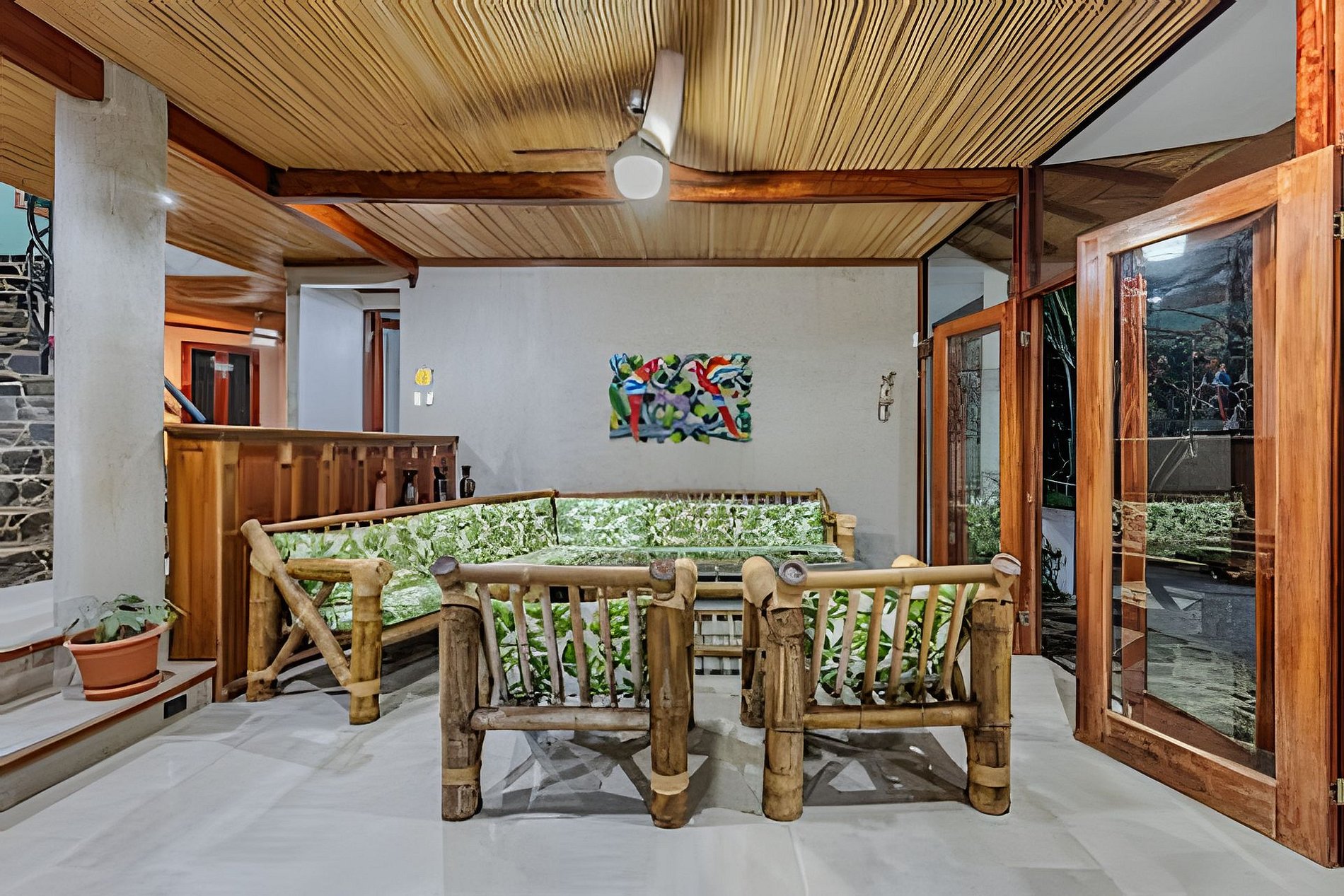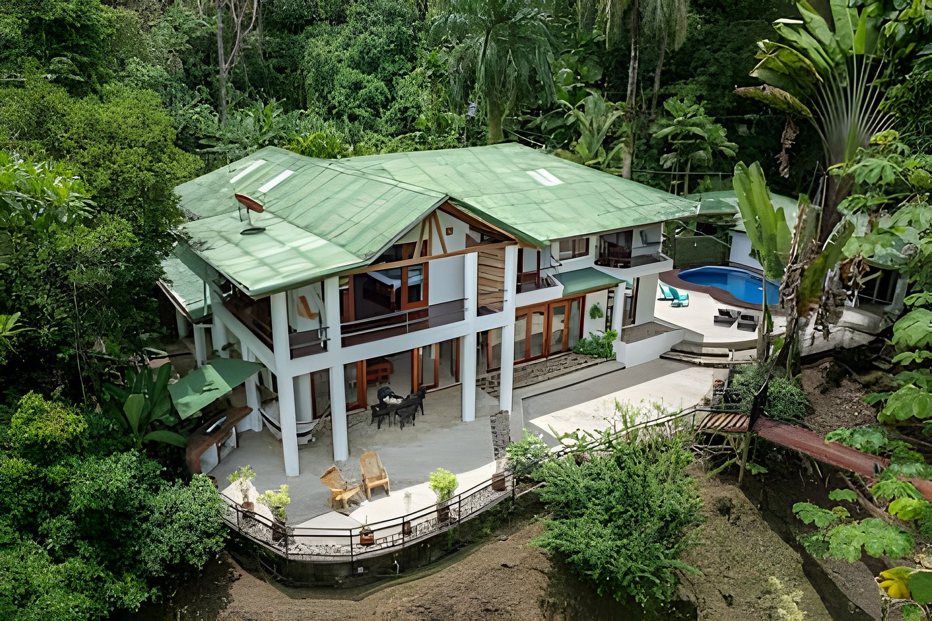Disfruta de una estancia única en nuestro bed and breakfast, rodeado por la exuberante naturaleza de la selva y con la cercanía a la playa y una majestuosa catarata. Contamos con cinco habitaciones completamente privadas, cada una equipada con baño propio, aire acondicionado y desayuno incluido. Algunas habitaciones ofrecen vistas espectaculares al mar, al río, al jardín o a las montañas, además de balcón o terraza para disfrutar del entorno natural. Nuestros huéspedes pueden acceder a una amplia variedad de áreas comunes, diseñadas para su confort y disfrute. Relájate en la piscina, comparte momentos en nuestras salas de estar con TV o prepara tus comidas en la cocina completamente equipada. También puedes disfrutar de una terraza frente al río, con vistas al mar, donde la tranquilidad de la selva se mezcla con el sonido del agua. Este rincón privado en el corazón de la naturaleza ofrece el refugio perfecto para una experiencia de descanso y aventura, en un ambiente íntimo y exclusivo.