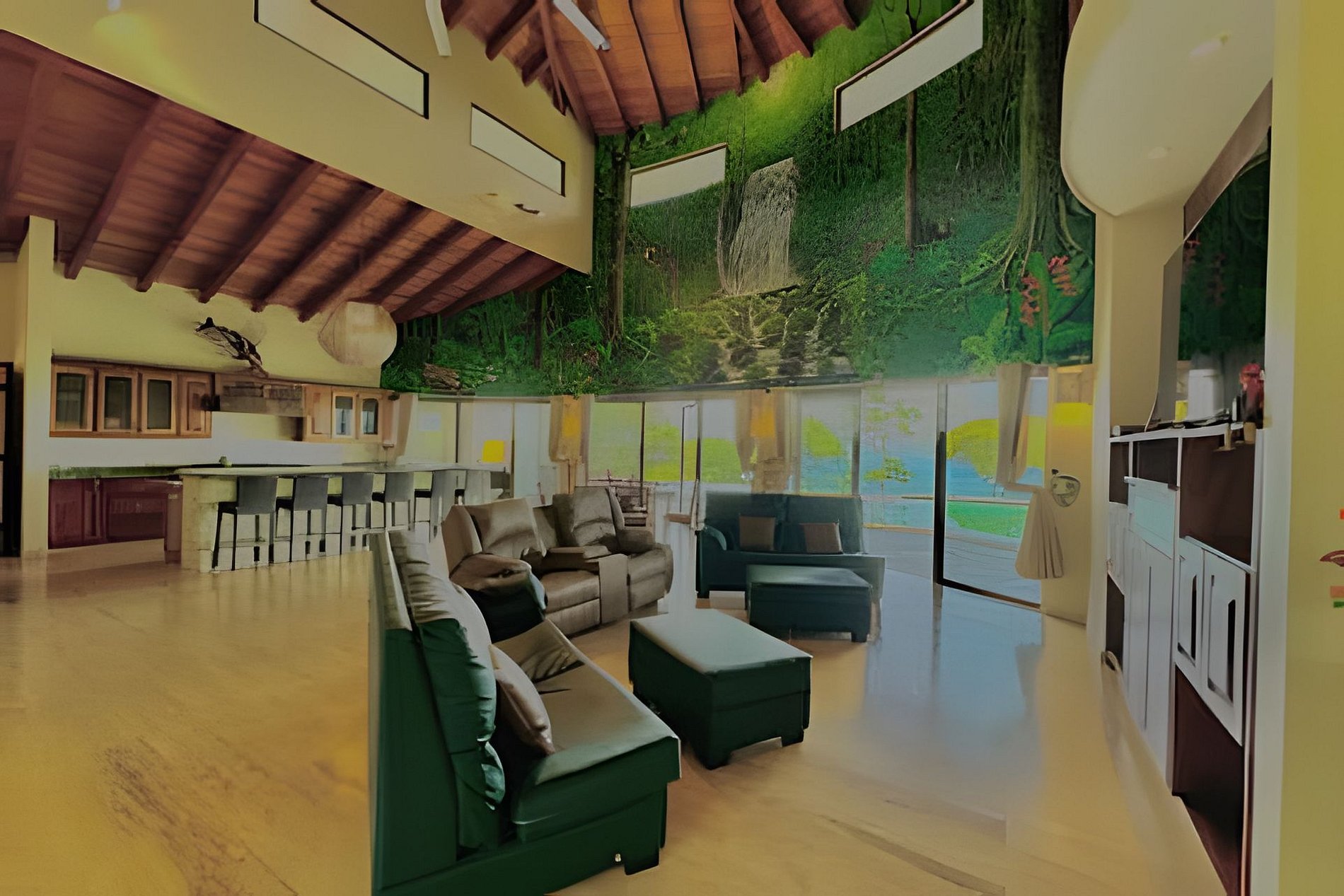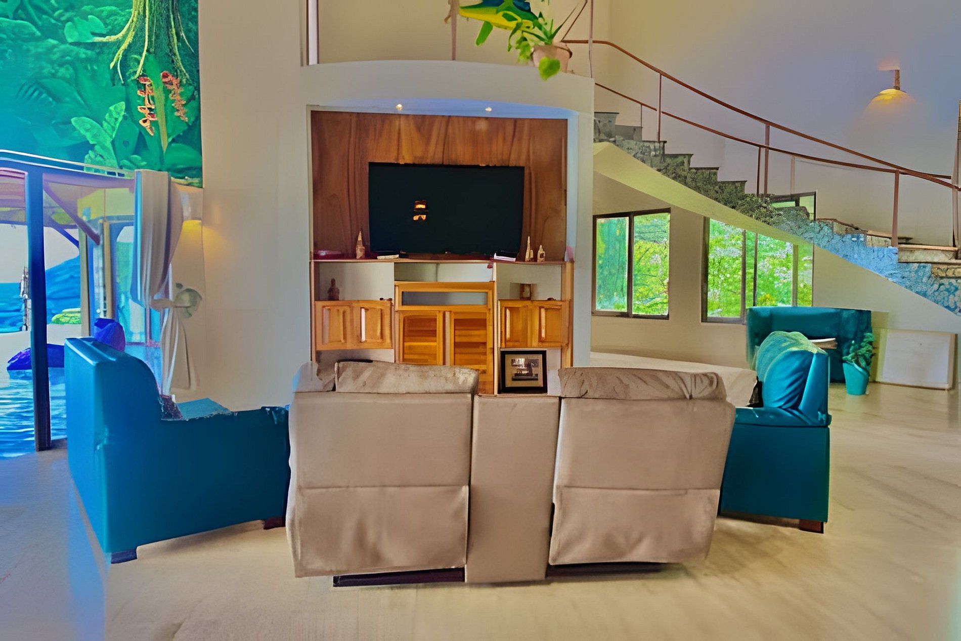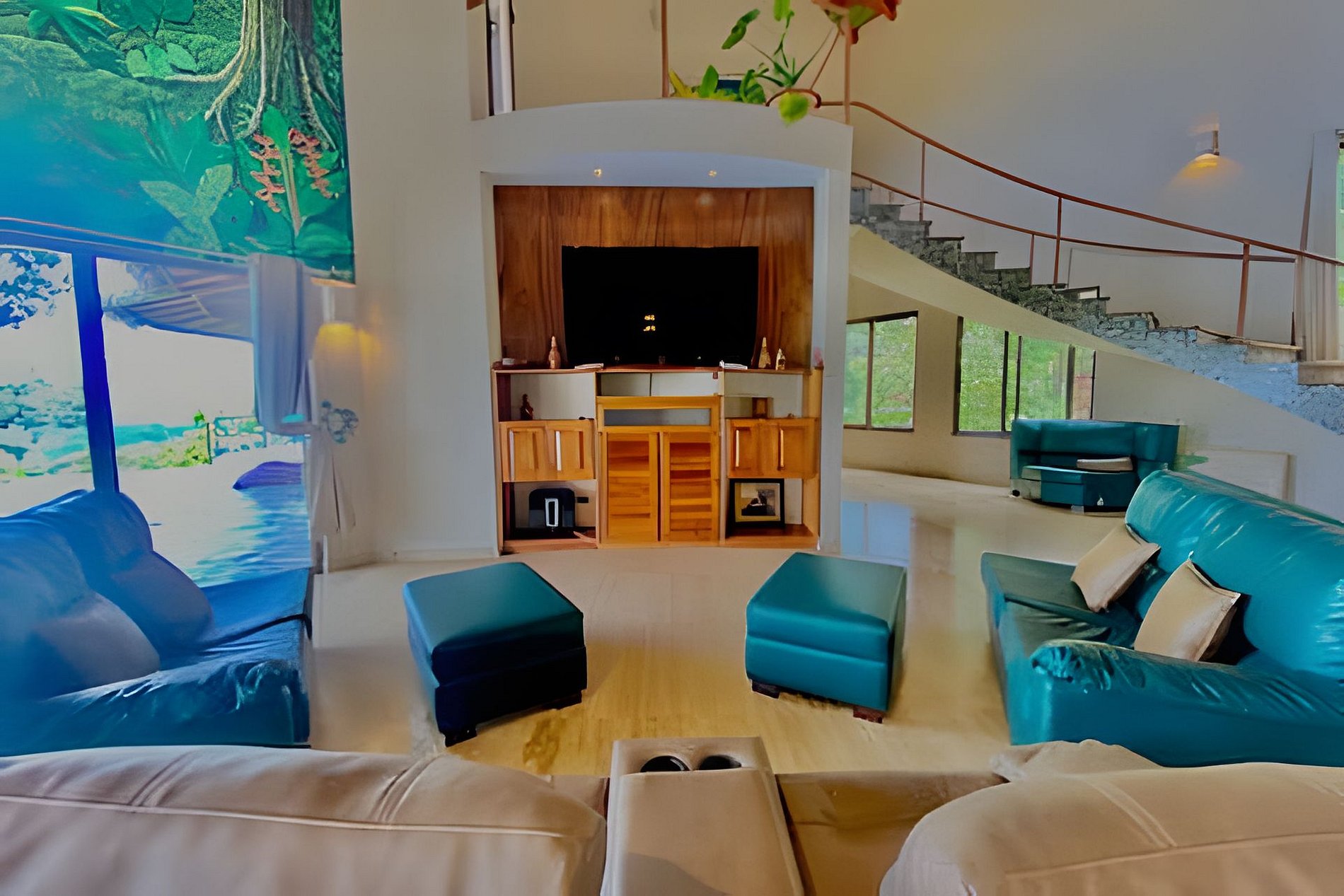 Las áreas comunes del lodge están pensadas para tu máximo confort. Podrás disfrutar de una cocina completamente equipada para preparar desde platillos sencillos hasta creaciones gourmet, una sala de TV con una gran pantalla para tus momentos de entretenimiento, y una espectacular piscina con vistas panorámicas al jardín, el océano y las montañas.