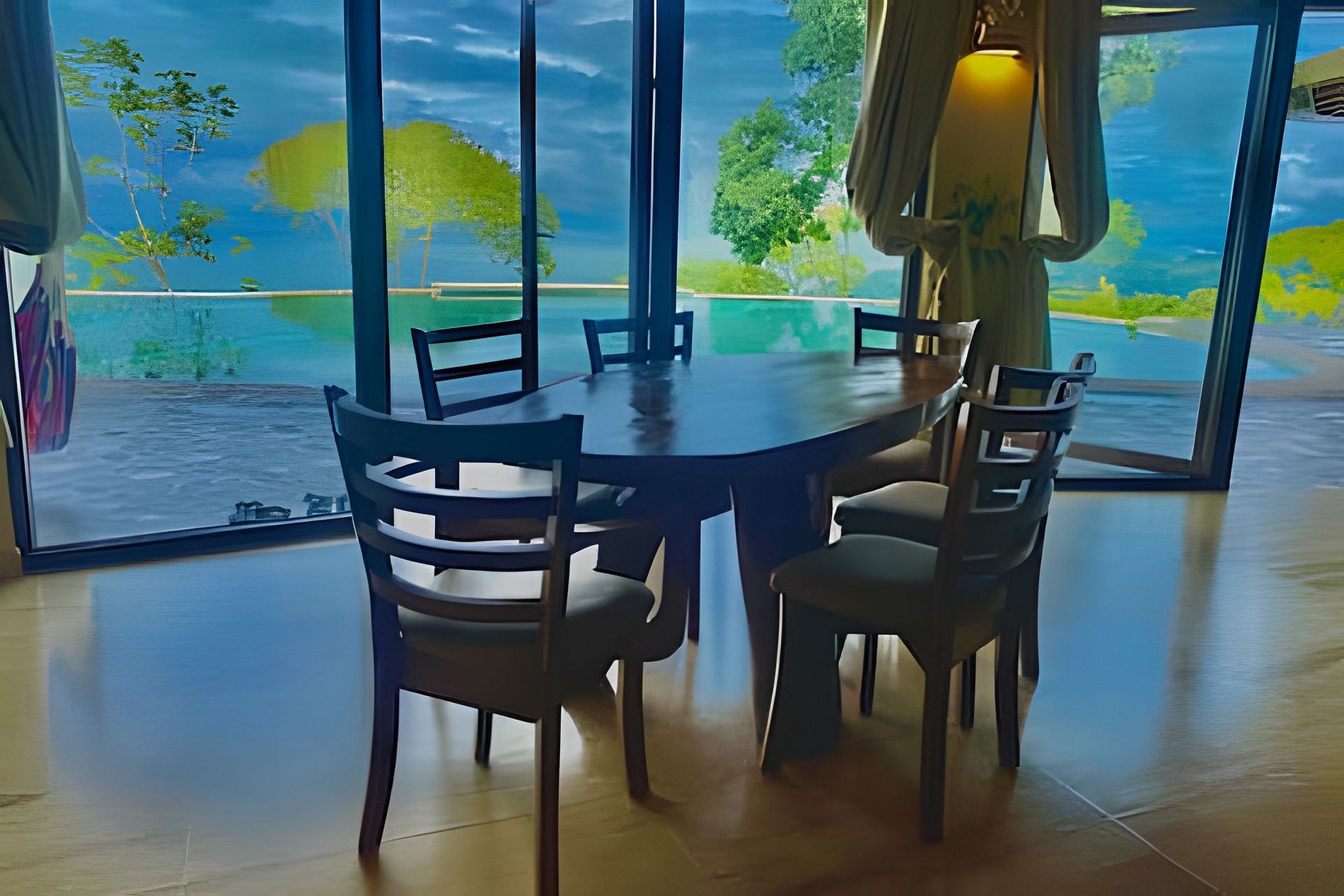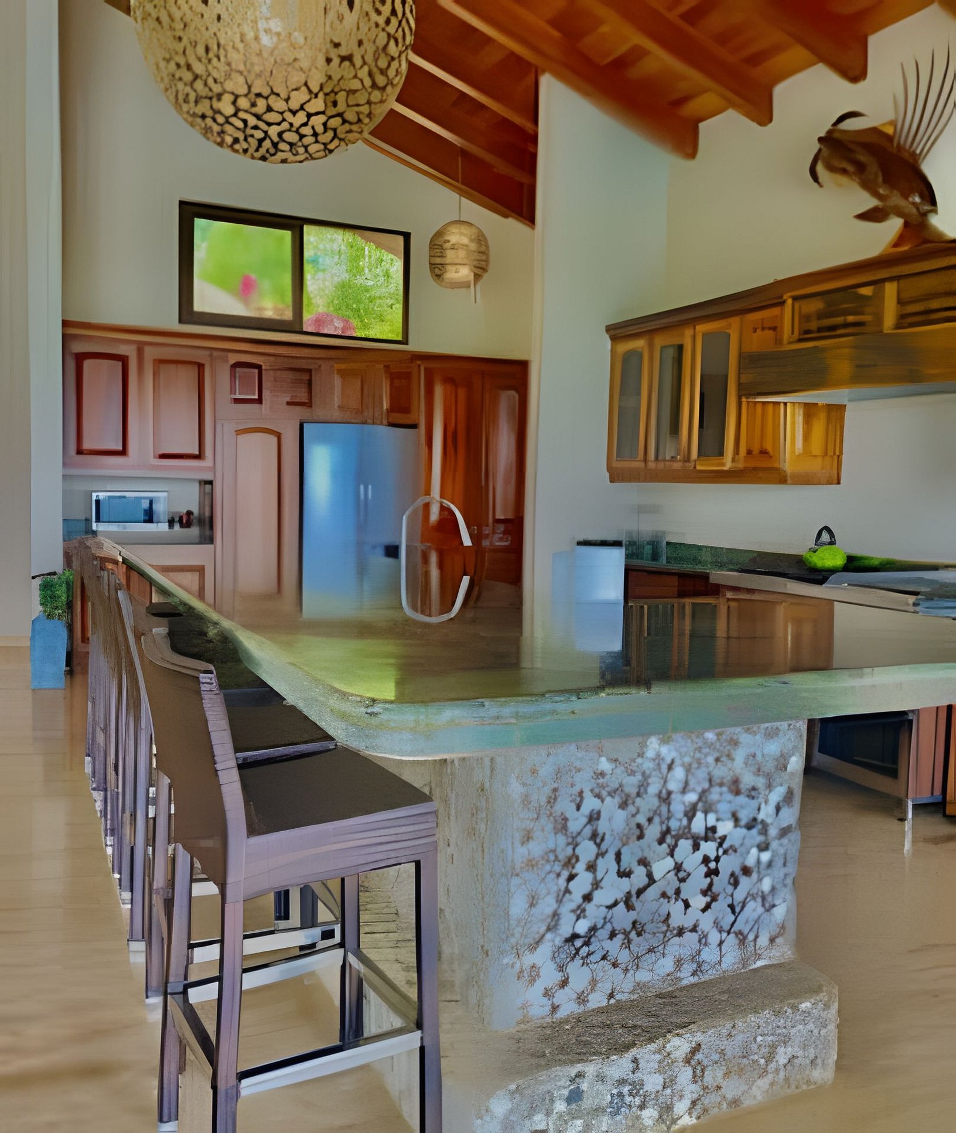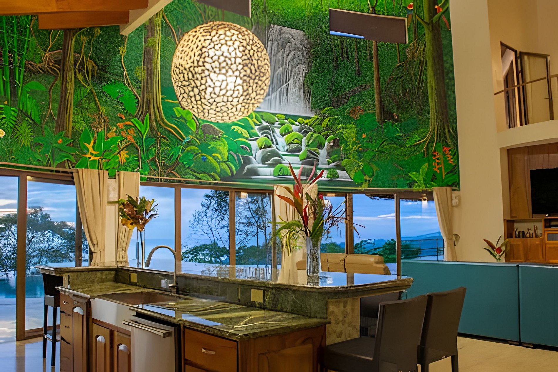Las áreas comunes del lodge están pensadas para tu máximo confort. Podrás disfrutar de una cocina completamente equipada para preparar desde platillos sencillos hasta creaciones gourmet, una sala de TV con una gran pantalla para tus momentos de entretenimiento, y una espectacular piscina con vistas panorámicas al jardín, el océano y las montañas.