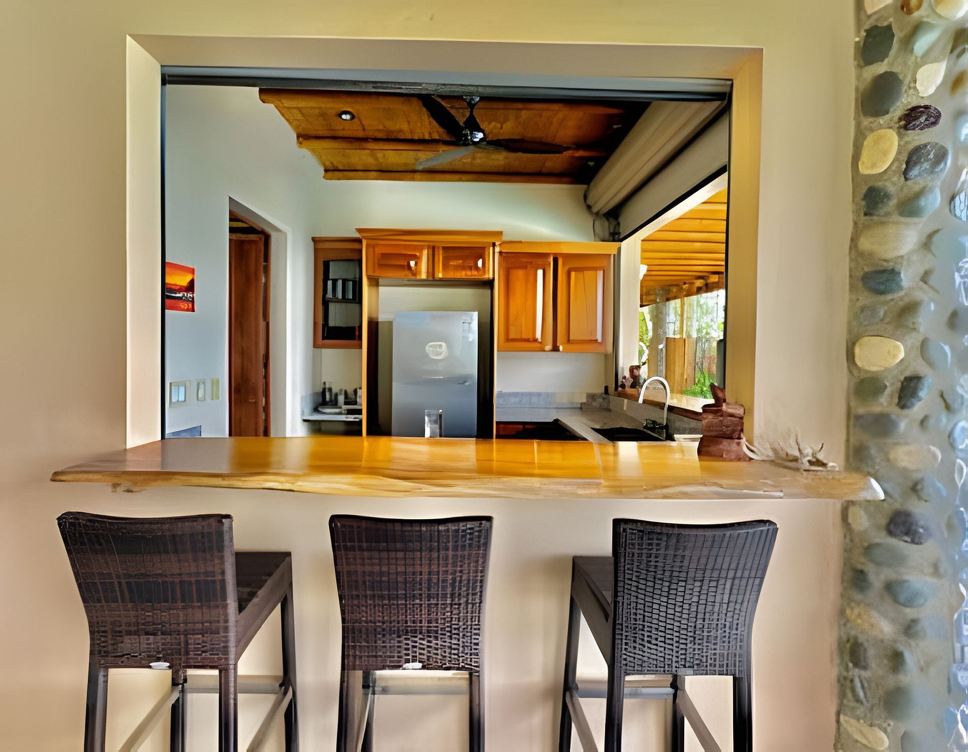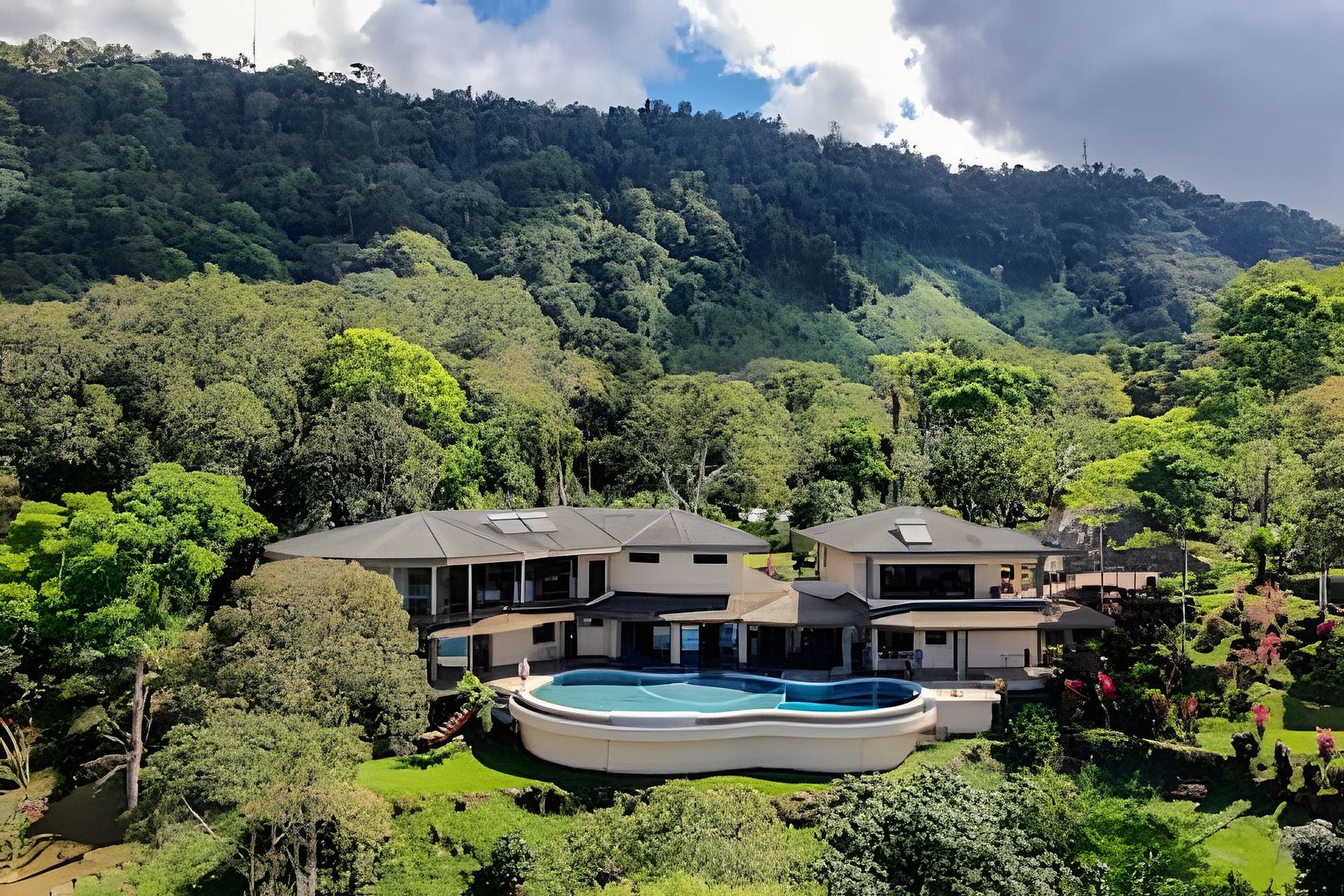 Las áreas comunes del lodge están pensadas para tu máximo confort. Podrás disfrutar de una cocina completamente equipada para preparar desde platillos sencillos hasta creaciones gourmet, una sala de TV con una gran pantalla para tus momentos de entretenimiento, y una espectacular piscina con vistas panorámicas al jardín, el océano y las montañas.