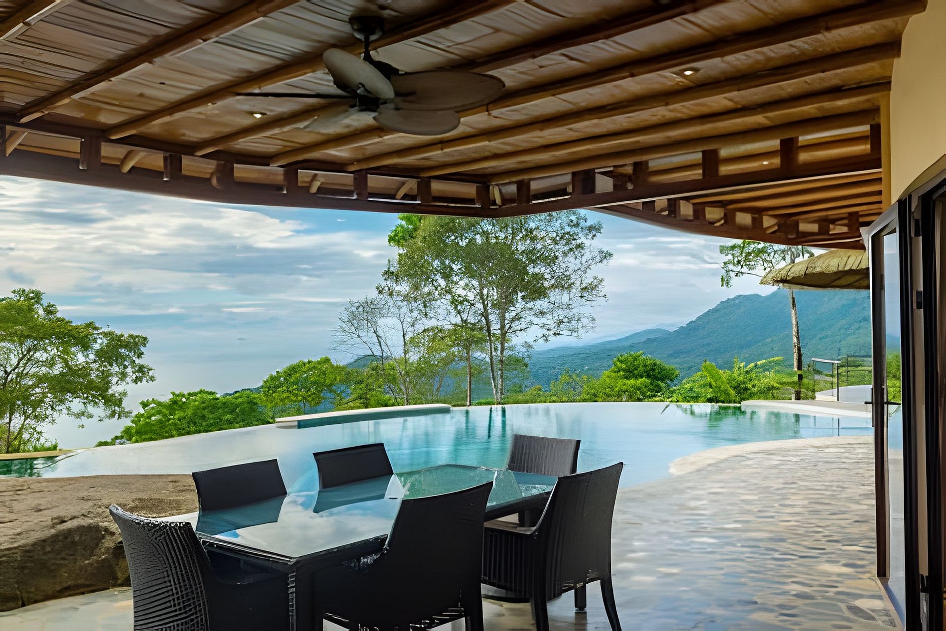 Las áreas comunes del lodge están pensadas para tu máximo confort. Podrás disfrutar de una cocina completamente equipada para preparar desde platillos sencillos hasta creaciones gourmet, una sala de TV con una gran pantalla para tus momentos de entretenimiento, y una espectacular piscina con vistas panorámicas al jardín, el océano y las montañas.