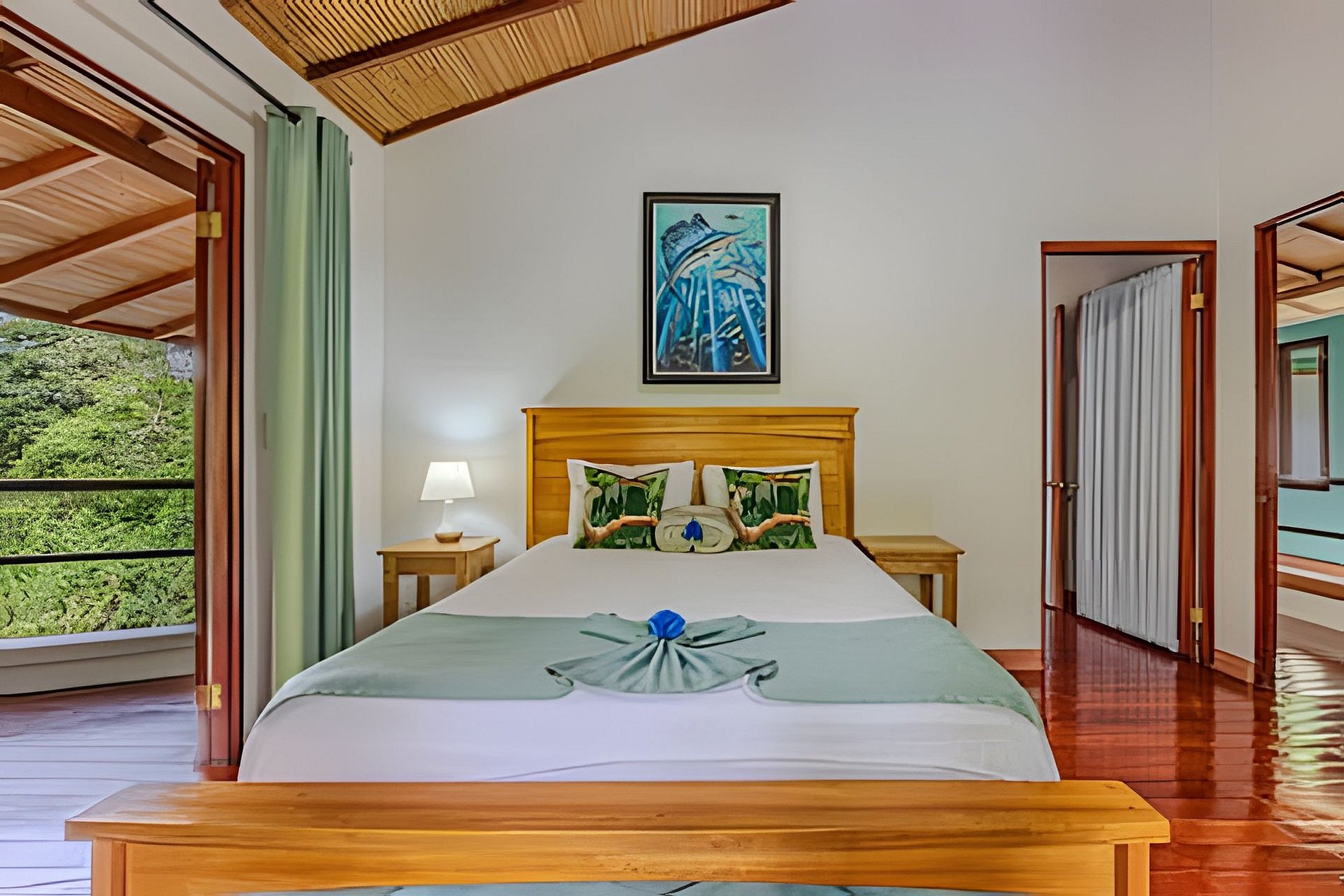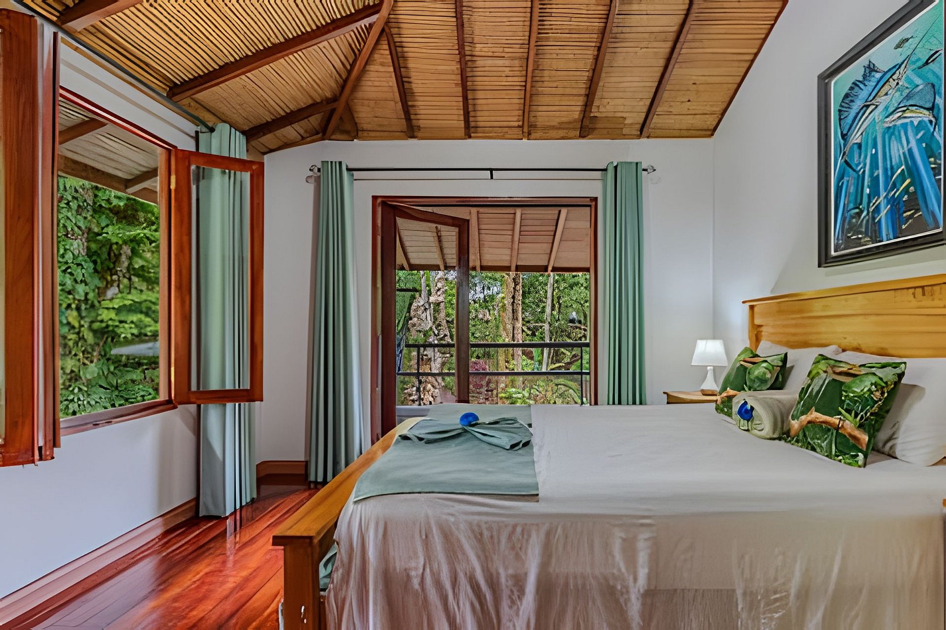 Disfruta de una estancia única en nuestro bed and breakfast, rodeado por la exuberante naturaleza de la selva y con la cercanía a la playa y una majestuosa catarata. Contamos con cinco habitaciones completamente privadas, cada una equipada con baño propio, aire acondicionado y desayuno incluido. Algunas habitaciones ofrecen vistas espectaculares al mar, al río, al jardín o a las montañas, además de balcón o terraza para disfrutar del entorno natural. Nuestros huéspedes pueden acceder a una amplia variedad de áreas comunes, diseñadas para su confort y disfrute. Relájate en la piscina, comparte momentos en nuestras salas de estar con TV o prepara tus comidas en la cocina completamente equipada. También puedes disfrutar de una terraza frente al río, con vistas al mar, donde la tranquilidad de la selva se mezcla con el sonido del agua. Este rincón privado en el corazón de la naturaleza ofrece el refugio perfecto para una experiencia de descanso y aventura, en un ambiente íntimo y exclusivo.