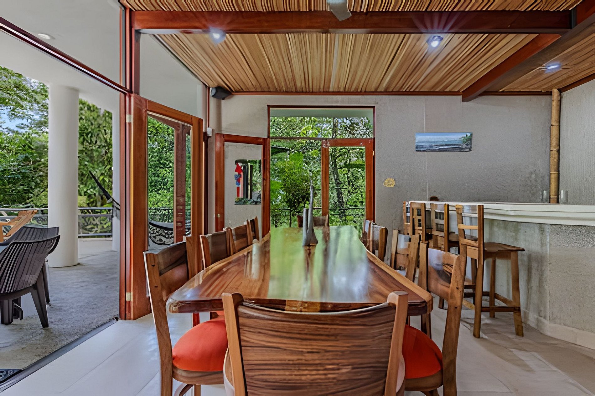 Ubicada en un paraíso de ensueño entre la selva y el océano, este Bed and Breakfast ofrece una experiencia vacacional única y privilegiada. Rodeada de naturaleza y con una ubicación estratégica, combina vistas espectaculares al mar y un ambiente relajante junto al río, creando el lugar ideal para unas vacaciones inolvidables. A solo dos kilómetros de la playa, y rodeada por dos riachuelos que cruzan delicadamente frente a la terraza, The Jungle Inn asegura una conexión total con el entorno natural, donde la frescura de la jungla y la brisa marina se mezclan para brindar una estancia perfecta. Privada y silenciosa, The Jungle Inn ha sido pensada para aquellos que buscan un escape en un entorno exclusivo, donde la paz y la privacidad se combinan con comodidades modernas y vistas impresionantes. Aquí, cada detalle ha sido creado para ofrecer una experiencia de desconexión total y tranquilidad, ideal para recargar energías y disfrutar de unas vacaciones verdaderamente memorables en el corazón de la naturaleza.